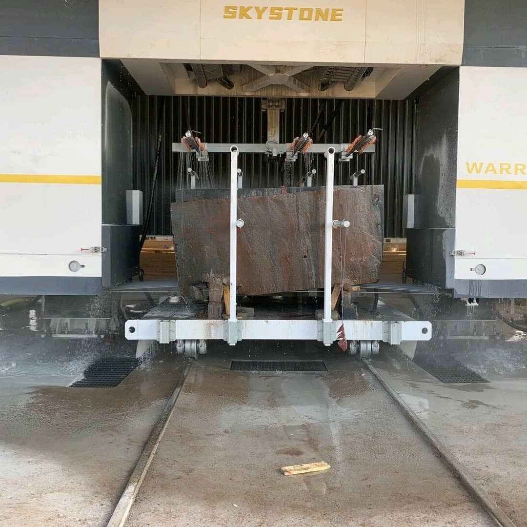 说明:1. 应用于工厂石材荒料加工,通过安装使用金刚石组合绳锯对石材荒料进行切割,实现大板的批量高效生产。